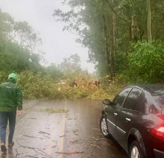 Equipes locais já estão atuando na remoção das árvores caídas e na liberação da via. Até o momento, não há informações sobre feridos ou outros danos significativos na área afetada. Motoristas são orientados a buscar rotas alternativas até que a situação seja normalizada.
