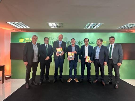 A ação, inserida na cerimônia do Prêmio Personagem Soja Brasil 2024/25, promovida pela Aprosoja, foi acompanhada pela comitiva da Fenasoja 2026 formada pelo presidente, Marcos Eduardo Servat, pelo presidente do Conselho Consultivo Permanente, Dário Júnior da Motta Germano, e pela diretora de Comunicação e Marketing, Zélia Savoldi.