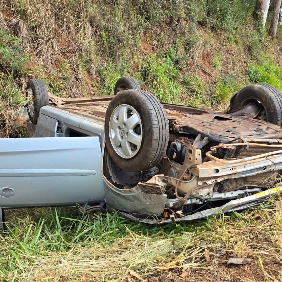 A BMW e o Corsa colidiram lateralmente. Com o impacto, o condutor do Corsa perdeu o controle e o veículo capotou na pista.