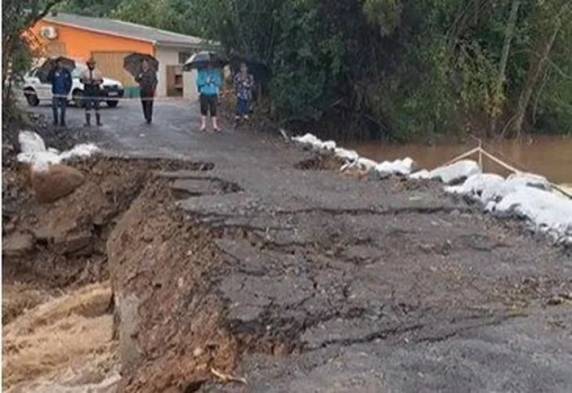 Na cidade de Sobradinho, no Vale do Rio Pardo, cerca de 300 famílias estão isoladas em razão da queda de uma passagem provisória sobre o Arroio Carijinho. A ponte que liga o bairro Baixada ao centro caiu após chuvas intensas na região na tarde de segunda-feira (26).