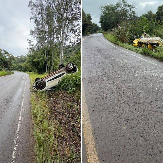 O primeiro acidente ocorreu na localidade de Filizbino, distante cerca de 200 a 300 metros da igreja da comunidade. Um automóvel de cor branca, com placas de Humaitá, tombou na pista, ficando com as quatro rodas viradas para cima. O veículo estava no lado oposto da rodovia para quem trafega no sentido Tenente Portela – Palmitinho, ou seja, à esquerda do sentido de tráfego. O carro estava em uma curva acentuada e não havia ninguém no local para prestar esclarecimentos. Até o momento, não há informações sobre o estado de saúde dos ocupantes do veículo.