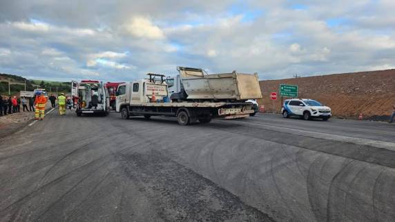 Segundo as informações, a colisão frontal envolveu um Toyota Corolla Cross, com placas de Arvorezinha, e um caminhão caçamba Mercedes. No veículo de passeio estavam um homem de 77 anos e uma mulher de 48 anos.