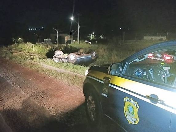 Na madrugada deste domingo (1º), a Polícia Rodoviária Federal atendeu a uma ocorrência de acidente de trânsito no Km 399 da BR-287, em Santiago. Um Ford Fiesta saiu da pista, colidiu com um poste e capotou, resultando em lesões leves em três ocupantes.