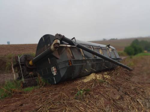 Outro tombamento foi registrado durante a tarde em uma estrada municipal na localidade de Mato Queimado e foi registrado em fotos por seguidores do Guia Crissiumal que passaram no local. O acidente envolveu um caminhão de ração.