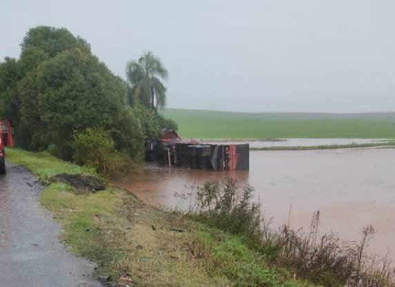 A colisão ocorreu no km 215,6 da rodovia e envolveu um automóvel Volkswagen Gol, com placas de Passo Fundo, e um caminhão, com placas de Boa Vista do Incra