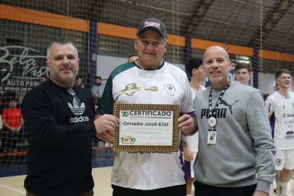 Além dos jogos, a noite foi marcada por um momento especial de reconhecimento. O Governo Municipal de Três de Maio prestou uma homenagem ao senhor Ornelio Kist, figura tradicional do esporte três-maiense, pelos seus mais de 30 anos de dedicação, incentivo e contribuição ao futsal e ao esporte local. Uma justa homenagem a quem sempre acreditou no poder transformador do esporte.