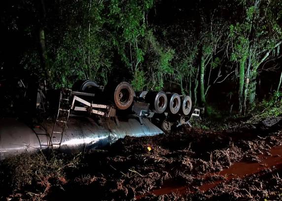 Um acidente foi registrado na noite deste sábado (28) na ERS-135, nas proximidades de Erechim. Uma carreta carregada com leite acabou capotando após supostamente ser cortada por outro veículo, conforme informações obtidas por nossa reportagem.