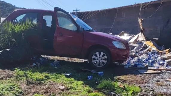 Acidente ocorreu na manhã desta quinta-feira (03), na curva da Linha Debastiani; vídeo mostra o momento da colisão