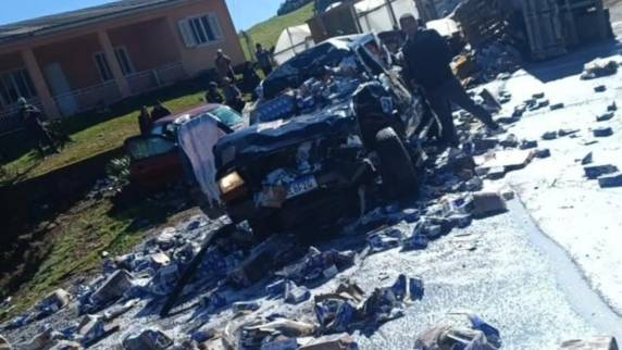 Um acidente de trânsito envolvendo um caminhão e outros dois veículos foi registrado na manhã desta quinta-feira (03), por volta das 10h50min, na ERS-129, na conhecida curva da Linha Debastiani, entre os municípios de Vanini e David Canabarro.