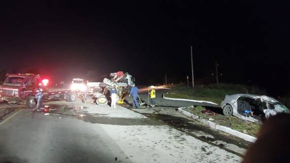 Duas pessoas morreram e outras três ficaram feridas em um acidente entre um automóvel e um caminhão na noite deste sábado (5) na BR-282. A tragédia ocorreu por volta das 20h30, em um trecho da rodovia no município de Lages, na Serra catarinense.