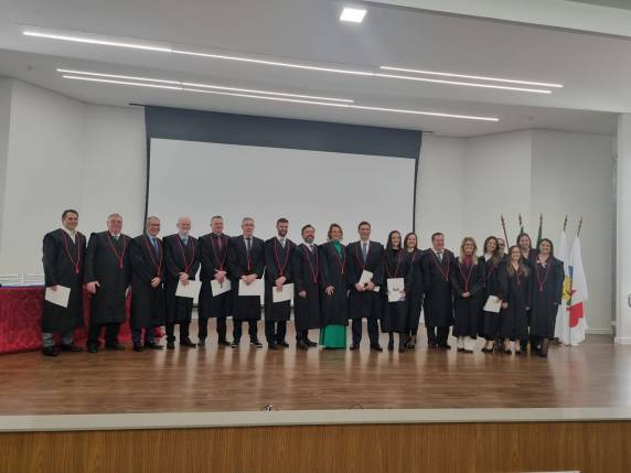 Além da presidente, foram empossados os demais membros da diretoria: Marcos Spengler (vice-presidente), Tiago Rossi Rodrigues (tesoureiro), Anaíra Coutinho (secretária-geral) e Alexandre Giordani Kretzmann (secretário-adjunto).