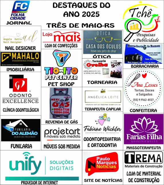 Neste ano de 2025, a empresa realiza a divulgação dos comércios e profissionais que se destacaram em Três de Maio, com base em pesquisas de opinião pública. A iniciativa visa reconhecer o trabalho de empresas e profissionais que se destacam em suas áreas de atuação, conforme a percepção da comunidade local.