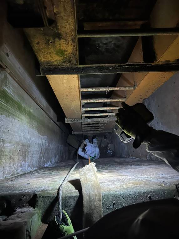 Utilizando técnicas de resgate vertical e uma linha de vida, a equipe conseguiu acessar o interior do fosso e retirar o animal com sucesso.