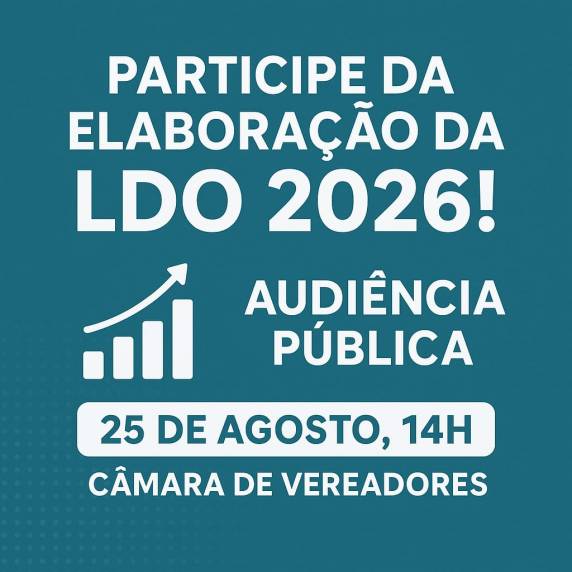 O encontro está marcado para o dia 25 de agosto de 2025, às 14h, na Câmara de Vereadores. O objetivo é assegurar a participação popular no processo de definição das metas e prioridades da gestão municipal para o próximo ano.