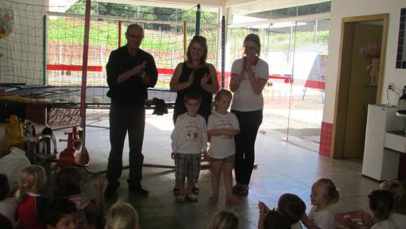 Os alunos da EMEI Paraíso da Criança de São José do Inhacorá receberam no dia 1º de Abril das mãos do Prefeito Municipal Eliseu João Redel Shenkel e da Diretora de Ensino, Adriane Regina Spohr, o uniforme composto por duas camisetas: uma manga curta e outra de manga longa.