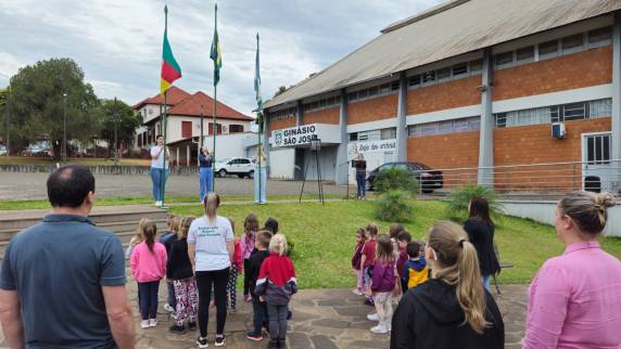o Hasteamento: Escola Barão do Rio Branco, CMEI São José e autoridades convidadas