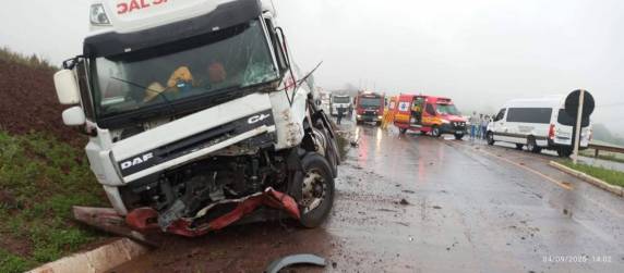 Conforme informações apuradas no local, a caminhonete seguia no sentido Nova Erechim–Pinhalzinho quando o condutor perdeu o controle da direção, rodopiou na pista e colidiu contra a carreta, que trafegava no sentido contrário. O caminhoneiro, de 68 anos, ainda tentou desviar para evitar o impacto, mas o veículo tombou na via. Ele sofreu ferimentos leves nas pernas e foi encaminhado ao hospital pelo Corpo de Bombeiros.