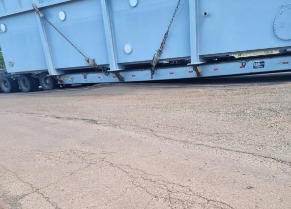 Veículo transportava equipamento de 27 toneladas e precisou de auxílio para seguir viagem