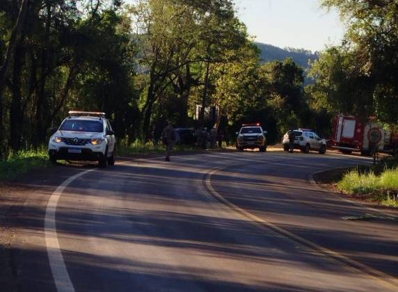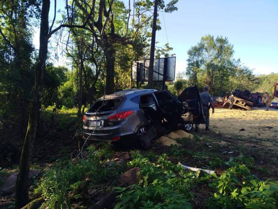 No local um caminhão emplacado em São Miguel do Oeste carregado de ração tombou sobre um veículo de passeio, Hyundai IX35 emplacado em Três Passos. O condutor do veículo natural de Palmeira das Missões morreu no local.