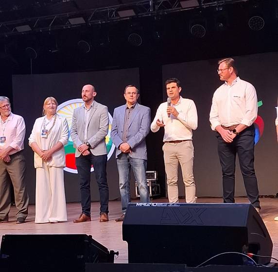 Representantes da Comissão Central da Fenasoja 2026 estiveram neste sábado (13) em uma das principais feiras de Misiones (AR), a 45ª Fiesta Nacional Del Inmigrante, realizada em Oberá. Na oportunidade ocorreu o lançamento da Fenasoja 2026, uma forma de reforçar o convite para que os argentinos possam participar e conhecer mais sobre a feira que ocorre em Santa Rosa (RS), de 1º a 10 de maio de 2026.