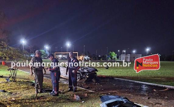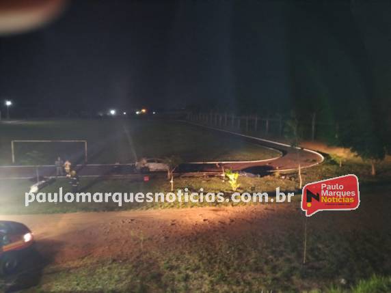 Veículo saiu da pista e pegou fogo após cair dentro de um estádio de futebol durante a madrugada deste domingo (05)