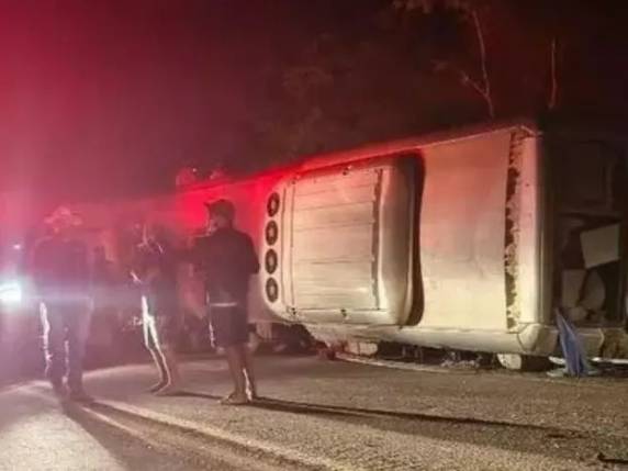 Veículo de turismo com mais de 30 passageiros tombou entre Paranatama e Saloá; equipes de socorro foram mobilizadas pelos governos de PE e BA