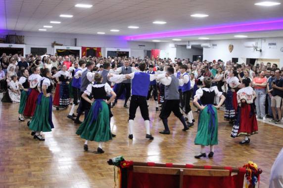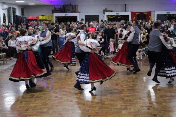 Outro destaque da noite foi a apresentação do Grupo Folclórico 25 de Julho, de Frederico Westphalen/RS, que trouxe ao público coreografias tradicionais, enriquecendo a diversidade cultural do evento. A animação musical ficou por conta da Banda Orquestra Continental de Itapiranga (SC), que garantiu a alegria e a dança até o final da programação.