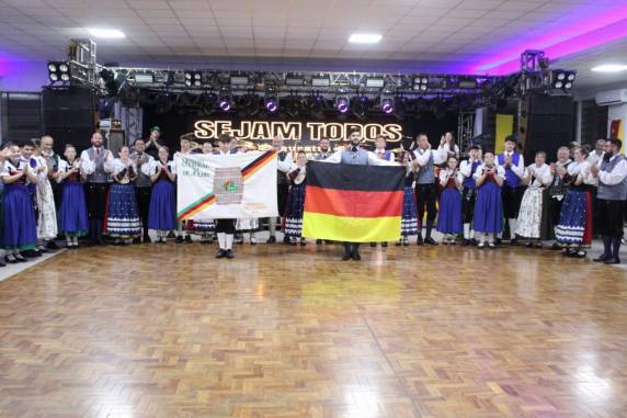 A noite contou ainda com uma ilustre visitante: a soberana, 1ª Princesa da Schweinfest de Nova Candelária/RS, Pâmela Volken, que convidou oficialmente toda a comunidade a prestigiar o evento em seu município. O prefeito de Alegria/RS, Sr. Fábio Schakofski também esteve presente, reforçando o espírito de integração regional.