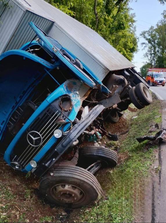 O motorista do caminhão relatou que tentou desviar para evitar passar por cima do automóvel, mas com a manobra brusca a barra de direção do caminhão quebrou, resultando em uma colisão quase frontal.
