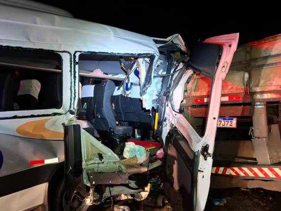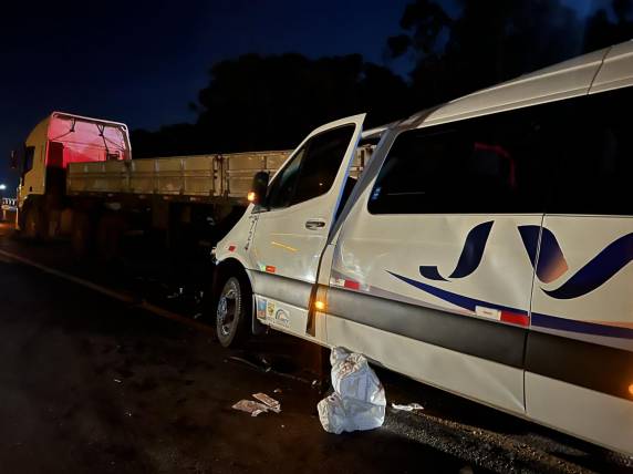 O caminhão teve uma pane mecânica e parou na pista. Enquanto o motorista descia para sinalizar, a van atingiu a traseira do caminhão. Ele não se feriu. Os depoimentos são de que o local é de baixa visibilidade.