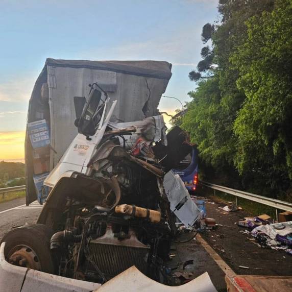 O acidente ocorreu no km 282 da rodovia, próximo ao perímetro urbano do município, envolvendo um caminhão carregado com eletrodomésticos, de Boa Vista do Sul, e um ônibus emplacado em Crissiumal. A colisão foi frontal.
