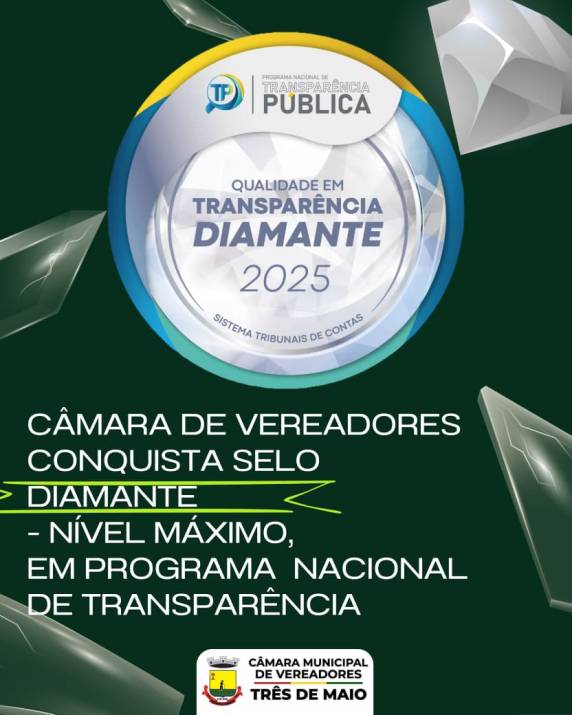 A conquista do Selo Diamante reafirma o compromisso da Câmara Municipal de Vereadores de Três de Maio com a transparência, a responsabilidade institucional e o respeito ao cidadão, fortalecendo a confiança da comunidade no Poder Legislativo.
