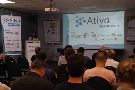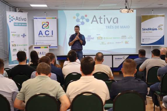 O Programa Ativa Três de Maio, realizado pela FUNCAP em parceria com o Sebrae, encerrou o ciclo 2025 com um encontro de integração entre os participantes e uma palestra inspiradora sobre cultura de inovação. O evento ocorreu no Centro Empresarial Sicredi ACI/Sindilojas, reunindo atores do setor público, setor produtivo, instituições de ensino e sociedade civil, as quatro hélices fundamentais para sustentar um ecossistema inovador no município.