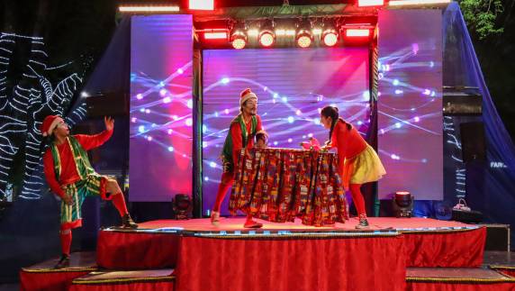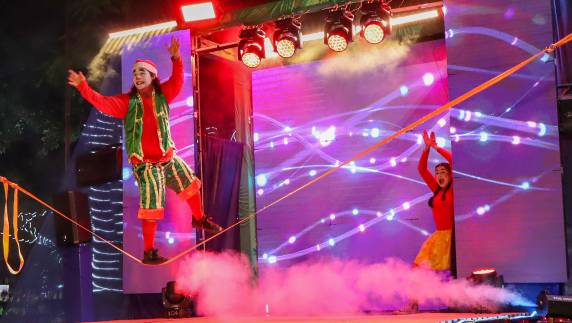 O público acompanhou o espetáculo “A Magia do Natal”, que trouxe muita interação e diversão por meio de palhaços e duendes caracterizados, que arrancaram risadas, envolveram as crianças e criaram um clima leve e acolhedor. As apresentações reforçaram o espírito natalino de forma lúdica, aproximando o público da magia do espetáculo.