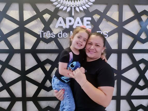 “Em maio de 2021 viemos para avaliação na Apae. Após ela passar pelos profissionais e conforme o diagnóstico, a Manu apresentava atraso de dois a três meses no desenvolvimento motor e na fala. Recebemos o diagnóstico de forma tranquila, dando início imediato ao tratamento. Sendo assim, ela passou a ter atendimentos semanais de fonoaudiologia, fisioterapia e terapia ocupacional. E no ano passado ela também iniciou acompanhamento psicológico”, explica.