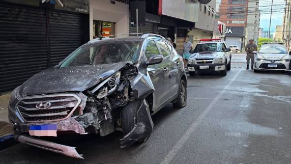 Na manhã deste domingo (18), um acidente de trânsito foi registrado na Rua 15 de Novembro, no centro de Passo Fundo. Uma motorista conduzia uma Hyundai ix35, com placas padrão Mercosul, quando perdeu o controle do veículo ao acessar a via a partir da Avenida Brasil e colidiu frontalmente contra a fachada de uma loja de roupas.