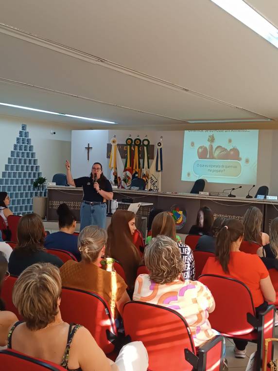 A formação foi conduzida pela Dra. Ana Paula Cecatto, doutora em Agronomia e graduada em Química Industrial de Alimentos, por meio da FAHOR. Com uma abordagem prática, acessível e participativa, a capacitação integrou conteúdos atualizados, estudos de caso e dinâmicas que estimularam o pensamento crítico, a responsabilidade coletiva e o protagonismo das participantes no contexto da segurança alimentar e nutricional.