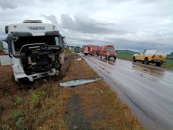 O motorista do caminhão foi encaminhado para atendimento médico com ferimentos leves nos pés.