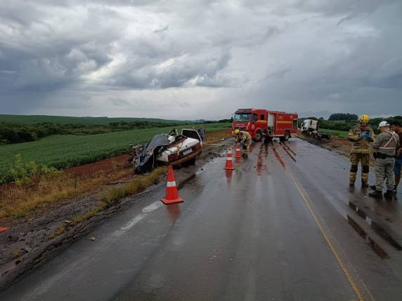Na manhã deste domingo (15), por volta das 9h26, o Corpo de Bombeiros de Nonoai atendeu a uma colisão envolvendo um caminhão e um GM Vectra.