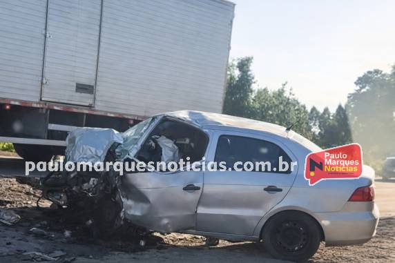 O acidente envolveu um VW Voyage, com placas de Santa Rosa, e um caminhão Volvo, emplacado em Cruzeiro do Sul. Conforme informações apuradas no local, a colisão foi do tipo lateral.