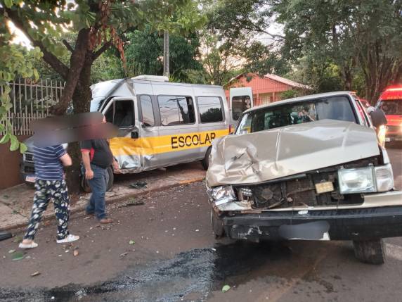 Um acidente de trânsito envolvendo uma caminhonete e uma van escolar foi registrado no início da noite desta quinta-feira (26), no cruzamento das ruas Augusto Rolim e Guilherme Fontana, no bairro Morada do Sol, em Ijuí.