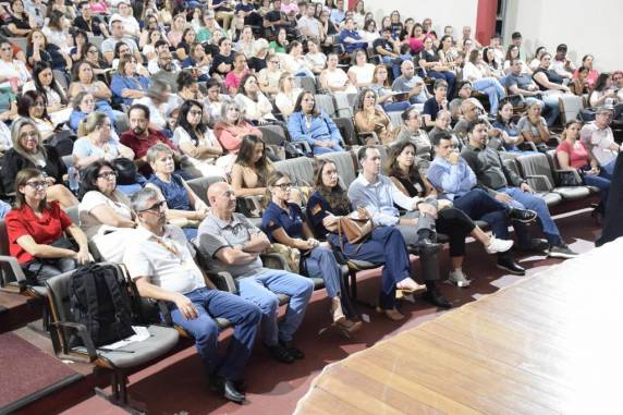 Na quinta-feira, 26 de março, cerca de 400 pessoas participaram da palestra “Eu Enxergo os Sinais”, realizada no Centro Cultural de Palmeira das Missões. A atividade foi ministrada pela promotora de Justiça Michele Dumke Kufner e pelo coordenador do NUPVE, procurador de Justiça Fábio Costa Pereira, sendo destinada a pais, educadores e à comunidade escolar das redes pública e privada do município.