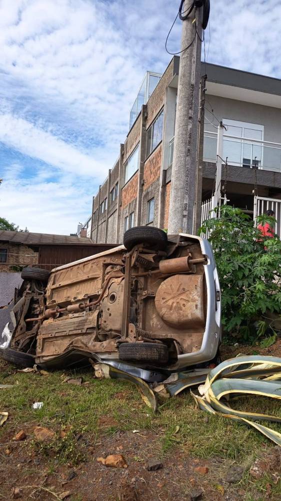 Por volta das 11h30min desta quarta-feira (1º) um veículo Renault Logan capotou nas proximidades do kartódromo, em Vacaria, na Avenida Antônio Ribeiro Branco.