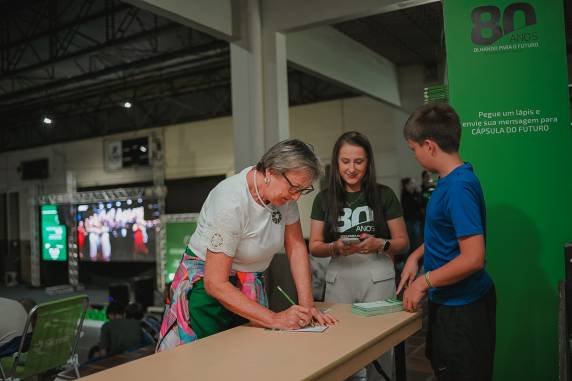 Outro momento marcante das Assembleias 2026 foi a experiência de cada associado participar da Cápsula do Futuro, projeto simbólico para marcar as celebrações de 80 anos, que reuniu mensagens, sonhos e expectativas dos associados, colaboradores, líderes de Núcleo, conselheiros e cooperativas escolares. Ao todo, mais de 1.700 cartas foram depositadas, registrando os desejos do presente para serem revisitados pelas próximas gerações.