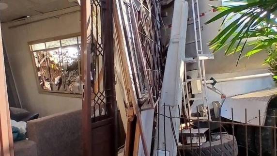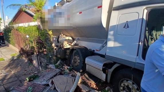 Devido à pane, o caminhão começou a se deslocar de ré na direção das residências. O motorista tentou retomar o controle do veículo, mas quando percebeu que iria colidir, pulou da cabine para sair.