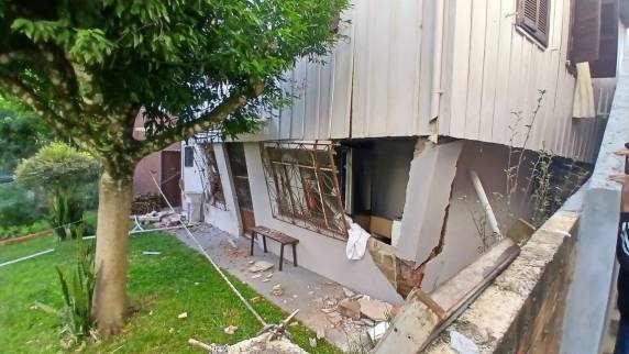 Um caminhão desgovernado atingiu dois chalés de madeira em Erechim, no norte do estado, na madrugada desta sexta-feira (17). Com o impacto da colisão, uma das casas foi deslocada.