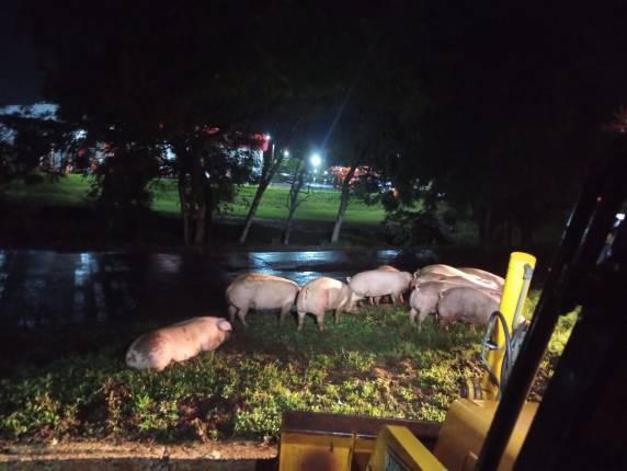 Com o impacto, parte da carga de suínos se soltou e os animais ficaram espalhados pela rodovia, exigindo atenção redobrada dos motoristas que trafegavam pelo local. O trânsito chegou a ficar interrompido por um período, sendo necessário cuidado por parte dos condutores.
