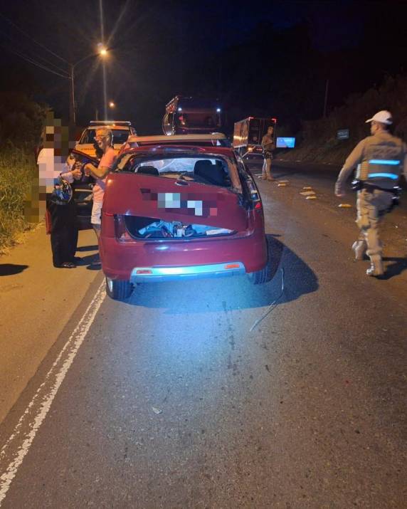 De acordo com as informações apuradas no local, o acidente envolveu um Hyundai HB20, um Ford Fiesta e um caminhão, nas imediações do estabelecimento Mescla. Com o impacto inicial, o Ford Fiesta acabou atingindo a traseira do caminhão.