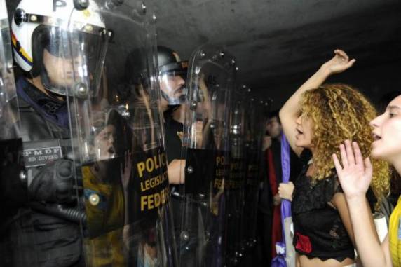 violência. Segundo estudantes, a polícia usou gás de pimenta. Favoráveis à redução gritavam "bandido é na prisão",