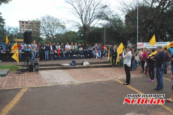 O 35º Núcleo do Cpers realiza protesto na Praça Henrique Becker Filho no centro de Três de Maio na manhã desta segunda-feira (3). O sindicato orientou aos professores para que acolham os alunos no primeiro dia de aula do segundo semestre, expliquem os motivos da paralisação contra o parcelamento de salários dos servidos estaduais – anunciado e confirmado pelo Governo do Estado na última sexta-feira (31) - e depois liberem os estudantes. Em entrevista a Rádio Colonial, a diretora do núcleo local do Cpers, Vera Lesses, pediu que as escolas façam períodos reduzidos utilizando esse tempo para conscientizar a comunidade escolar quanto ao descaso do governo com os educadores e a educação pública gaúcha.